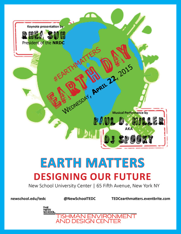 - Flyer of Earth Day 2015: Earth Matters: Designing our Future. Keynote by Rhea Suh, president of the NRDC