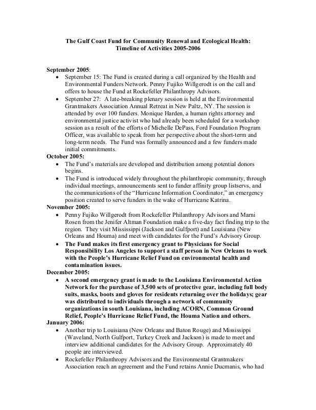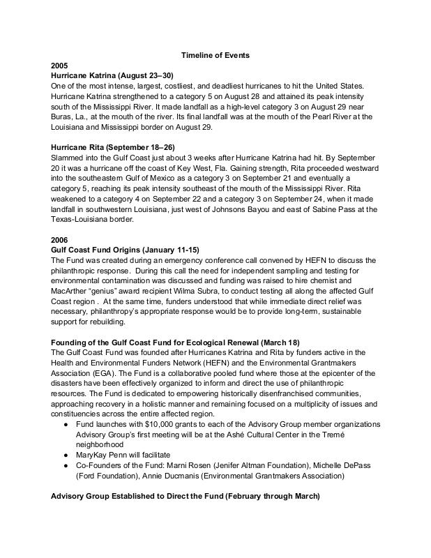 Document: Timeline of Hurricane Katrina & Founding of Gulf Coast Fund