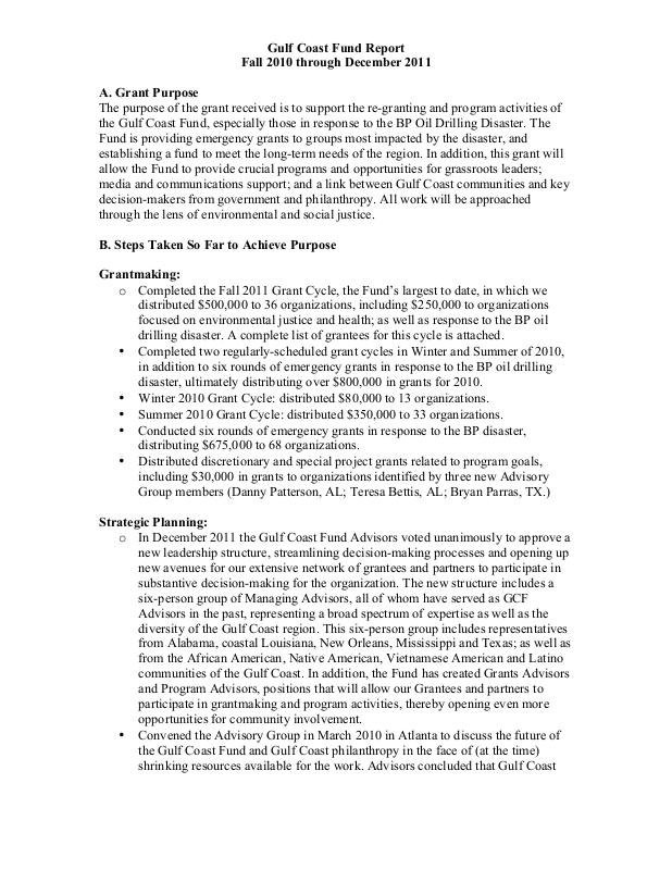 Document: Gulf Coast Fund Grant Report 2012