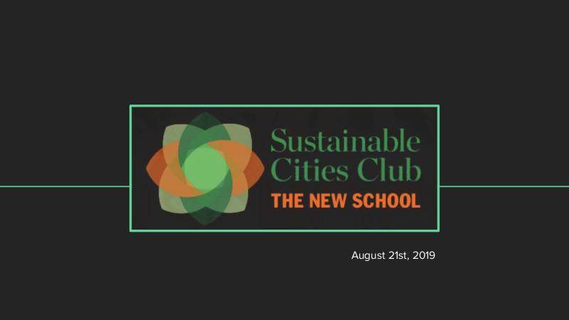 Presentation: Sustainable Cities Club Orientation Orientation for Sustainable Cities Club. The purpose of this organization is creating relationships among sustainability-curious students at the New School. -
