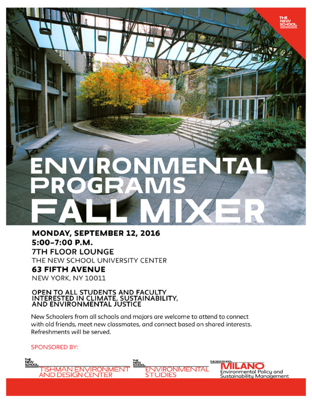 2016 Environmental Programs Fall Mixer Environmental Programs Fall Mixer, open to all students, staff and faculty interested in climate sustainability and environmental justice. -