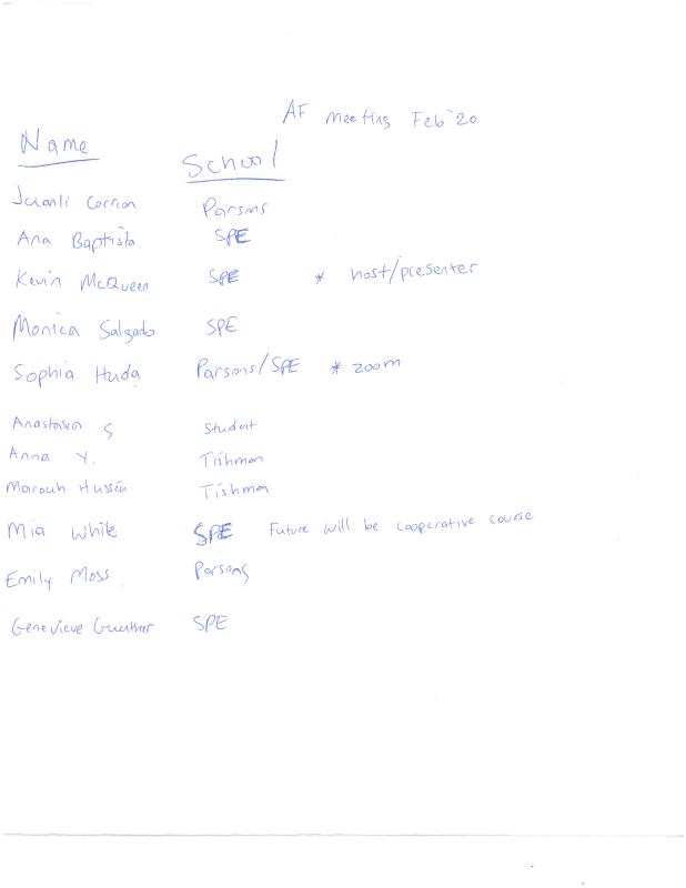 Event: Kevin McQueen Affiliated Faculty Seminar Attendee List                        Affiliated Faculty Sign-Up List for Kevin McQueen's Affiliated Faculty seminar at the Tishman Center. Event: Kevin McQueen Affiliated Faculty Seminar Attendee List                        Affiliated Faculty Sign-Up List for Kevin McQueen's Affiliated Faculty seminar at the Tishman Center.