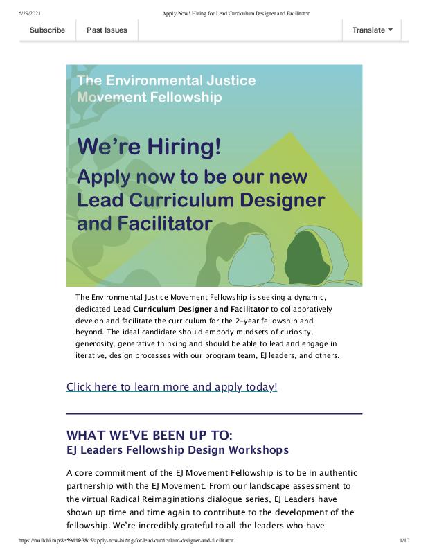 Communication: TEDC Newsletter: Environmental Justice Movement Fellowship