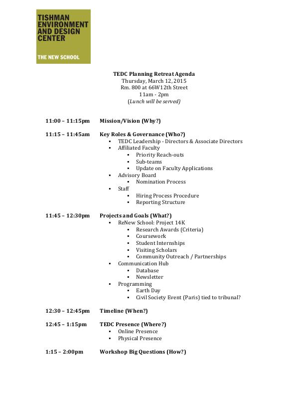 TEDC Strategic Planning Retreat Agenda which took place on March 12, 2015.