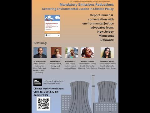 Video: 2023 MER Webinar Across the United States, fossil fuel infrastructure emits toxic air pollution and planet-warming greenhouse gases that drive climate change. Low-income communities and communities of color bear the brunt of both, living on the front lines of impacts from climate change as well as suffering the harms of localized co-pollutants, like particular matter and nitrous oxides, emitted by nearby facilities. A just and equitable climate mitigation policy for the power sector must make the elimination of the sector’s outsized impact on these environmental justice (EJ) communities an explicit goal. A new joint report by Dr. Nicky Sheats of the John S. Watson Institute for Urban Policy and Research (Kean University) and members of the Tishman Environment and Design Center, lays out a framework for a policy to require mandatory emissions reductions (MER) of power sector pollution in EJ communities, and applies it to three state case studies: New Jersey, Minnesota, and Delaware. -