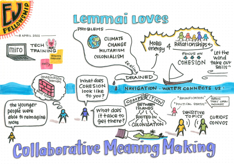 Image: Graphic Notes of EJ Movement Fellowship April 2022 Retreat Graphic notes by Yuki Kidokoro of the Environmental Justice Movement Fellowship retreat on April 8, 2022. -