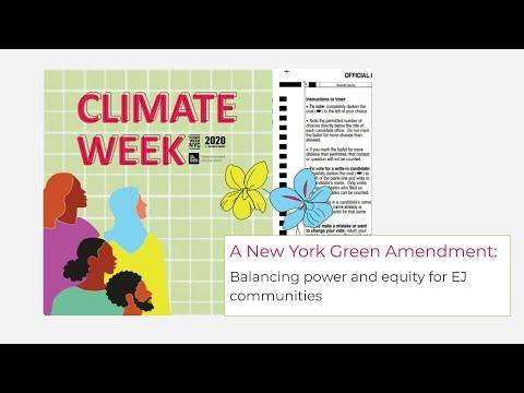 A New York Green Amendment: Balancing power and equity for EJ communities Recording of The Green Amendment and environmental justice in New York State panel. Panelists include Maya K. van Rossum, Founder, Green Amendments for the Generations, Eddie Bautista, Executive Director, New York City Environmental Justice Alliance, Kate Kurera, Deputy Director, Environmental Advocates NY and Christine Appah, Senior Staff Attorney, New York Lawyers for the Public Interest Environmental Justice Program. Part of Climate Week 2020 -