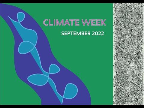 Promotional Materials: Paths to Action Paths to Action: A 2017 Climate Week Event. Close ups of speakers, audience members listening, presentations. -